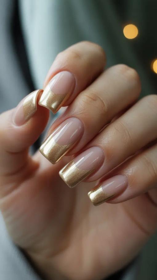 One of the most classic French tips is never going to be out of fashion and this square with a gold border is the reason. It is contemporary, smooth, and ideal to people who desire short or medium-length nails with a touch of additional gloss. The neutral base keeps it low-profile and the gold tips attracting only a small amount of light say, yes, I notice details.
