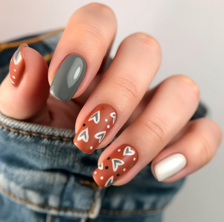 This is perfect if you’re someone who loves seasonal nail art but still wants it to feel minimal. The matte finish is especially great with the medium length nails, and the heart patterns are not too much that one can say, I am wearing a costume. Super wearable, super fun.