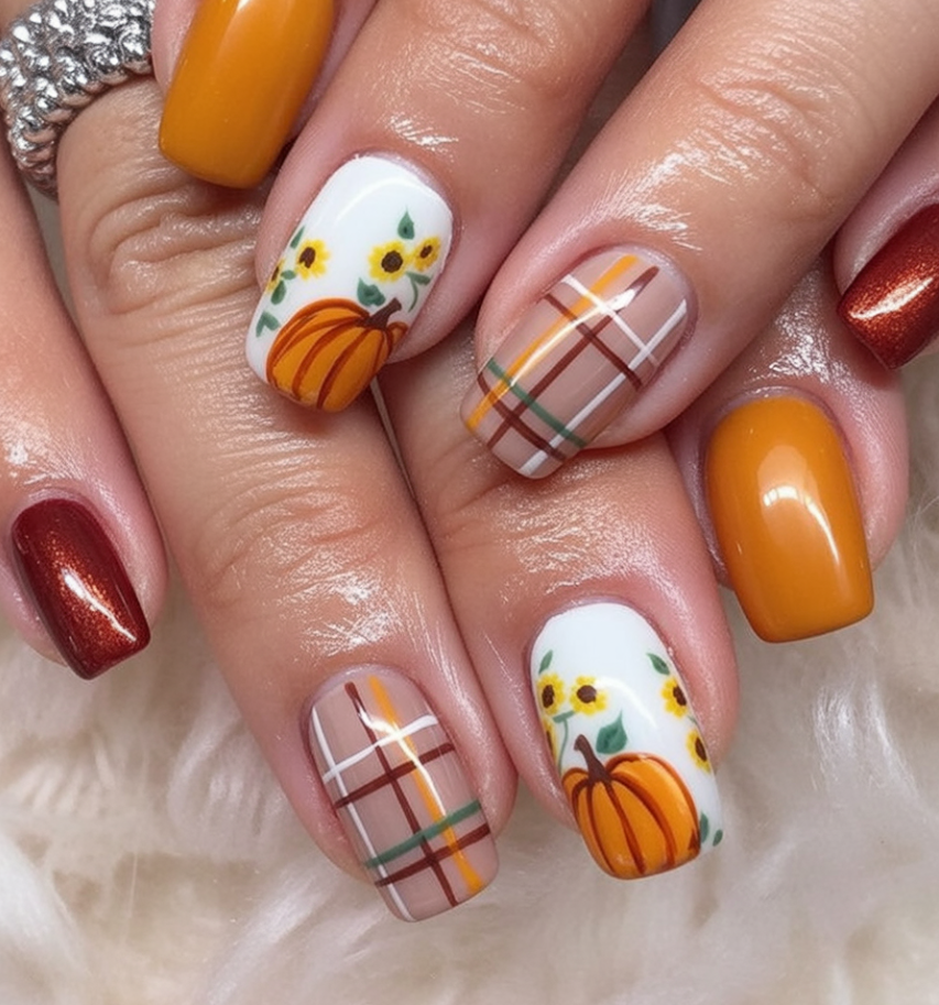 5. Pumpkin Patch Chic with Plaid and Sunflowers