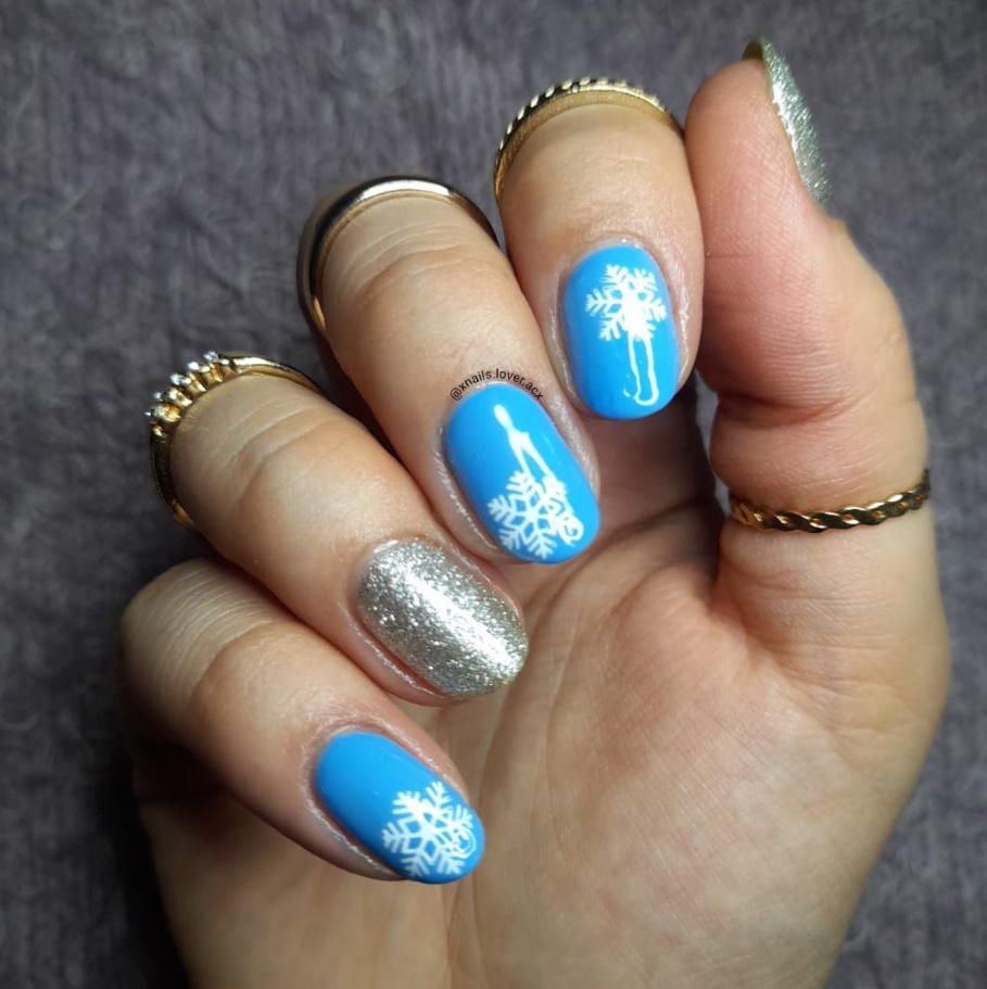 This cheerful blue and silver manicure perfectly captures the joyful sparkle of a crisp, snowy day.