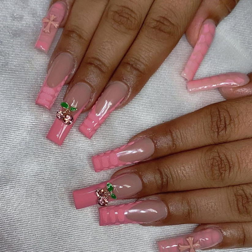 6. 3D Pink French with Cherry Charms