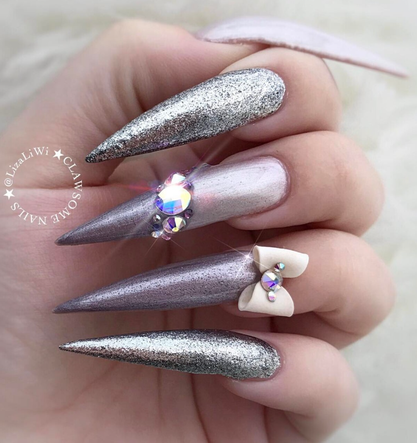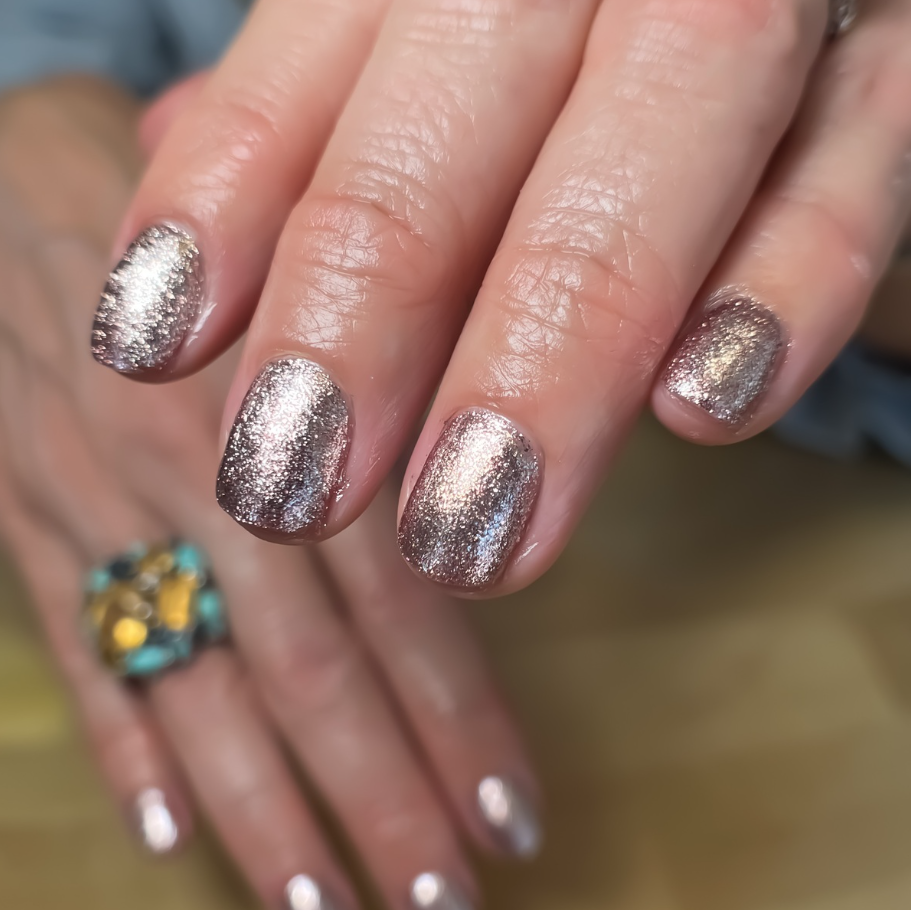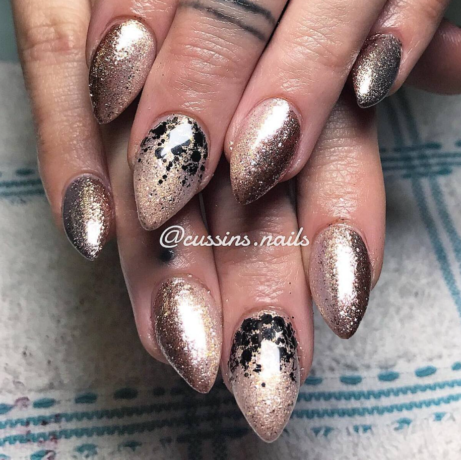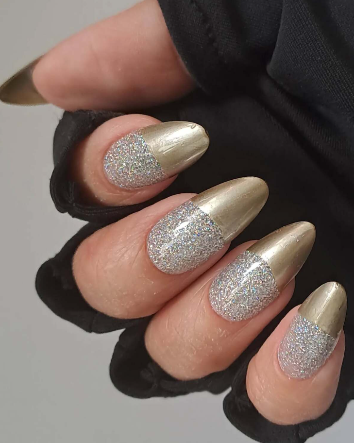 25 Glam Holiday Nail Designs with Sparkling Glitter and Metallic Accents
