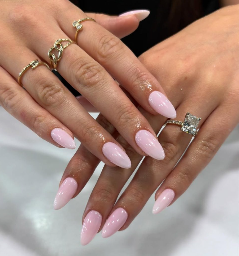 15. Glossy Ballet-Pink Almond—the quiet luxury manicure of 2026
