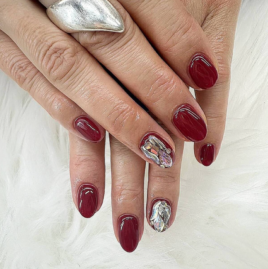 Rich burgundy nails shine with a deep, luxurious finish, embodying winter elegance at its finest.