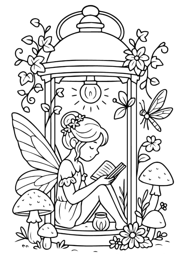 Download free, printable Cozy Library Coloring Pages in PDF or JPG. Relax and explore charming book nooks, cats, tea, and magical reading corners.