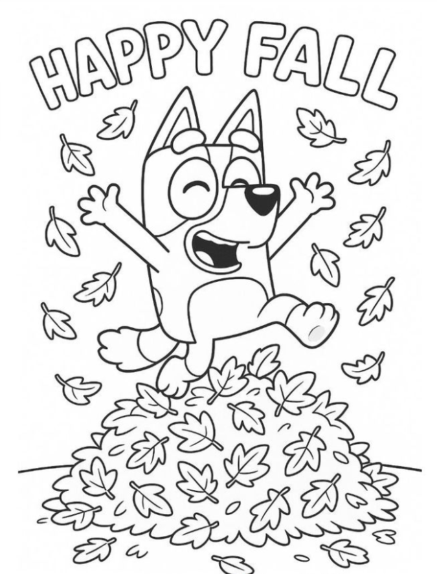 Celebrate autumn with these fun Bluey fall coloring pages! Get the free PDF printable and enjoy cozy seasonal fun. Save this pin for leaf-themed activities!