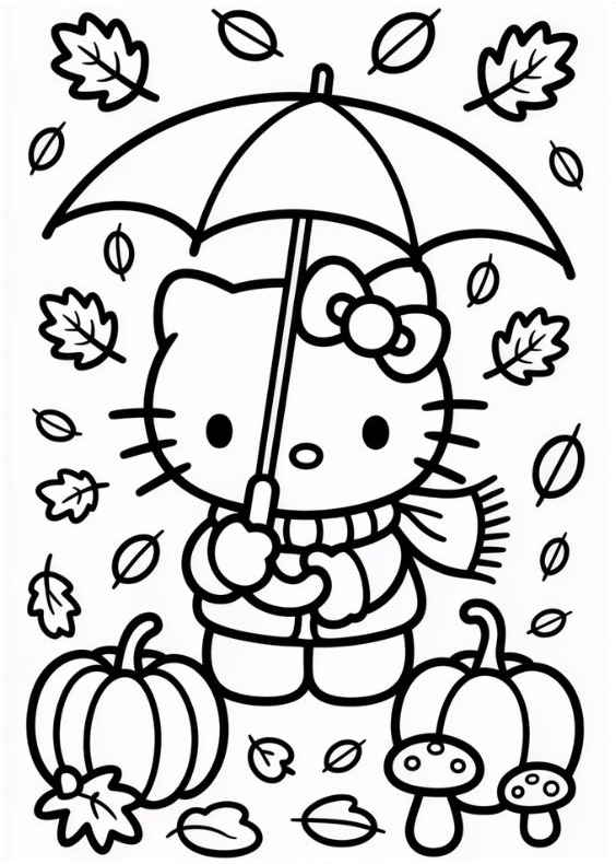 Enjoy this adorable Hello Kitty coloring page with autumn leaves, perfect for fall and cozy coloring time. These Hello Kitty coloring pages are great for kids, teens, and Hello Kitty fans of all ages. Download or save this pin for your free printable!