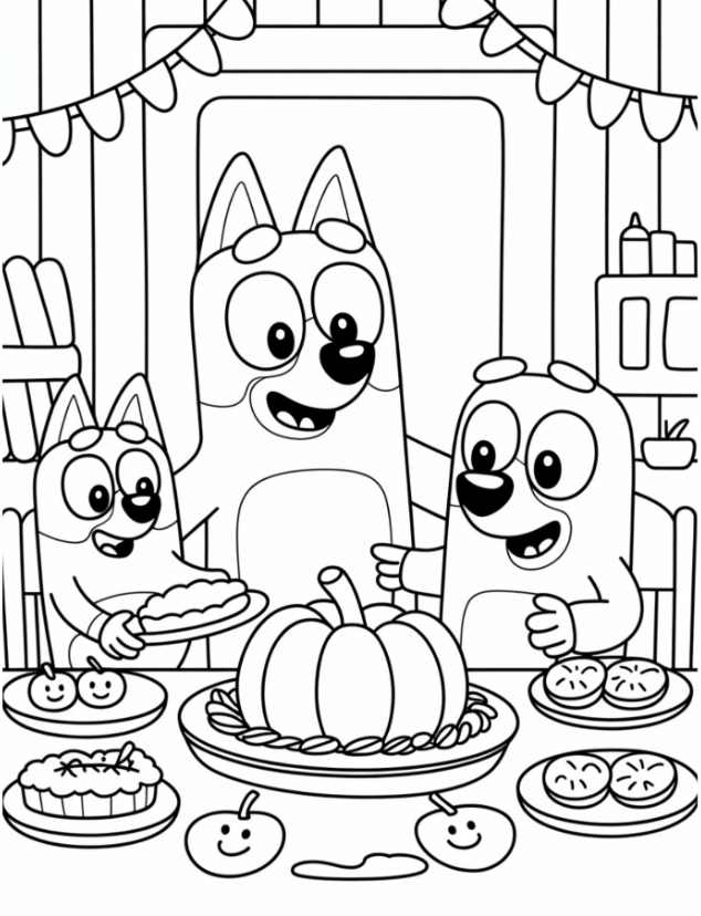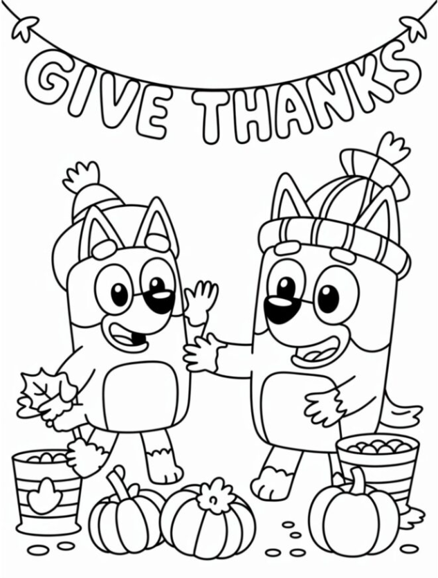 1. Bluey Outlines for Thanksgiving Fun