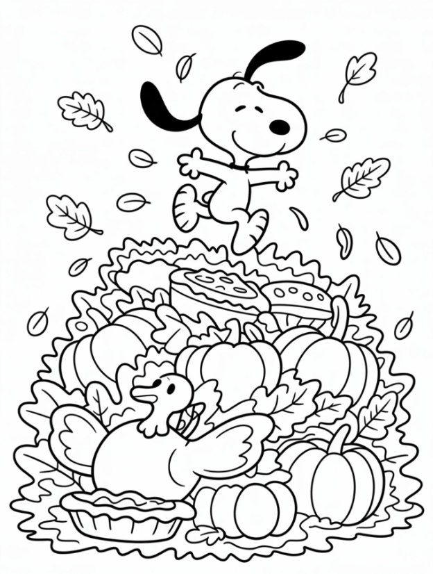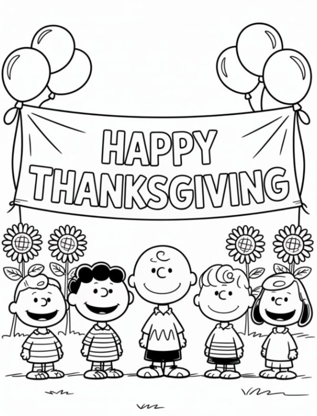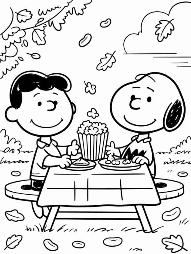 Peanuts Thanksgiving coloring sheets go beyond the feast, and that’s why they hold attention. Leaves, banners, and little pumpkins make great fillers for tiny artists. Linus with a fall scarf, Sally with a stack of plates, or Peppermint Patty laughing by the table, every page feels cozy and bright. It all ties back to family and fun.