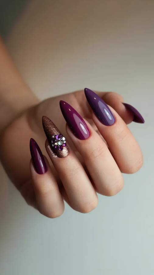 8. Amethyst Glam with Metallic Accents