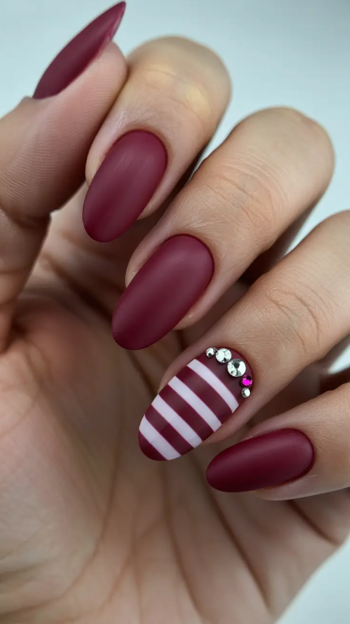 4. Berry Matte Stripes with Crystal Accents
