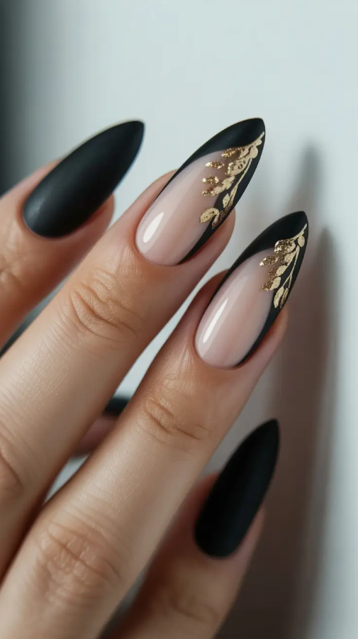 10. Matte Black with Golden Leaf Art