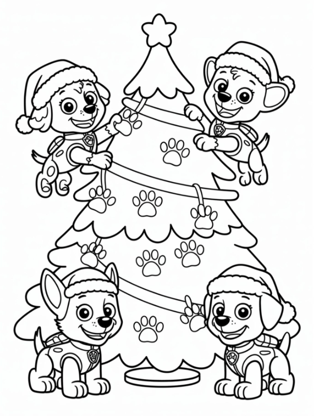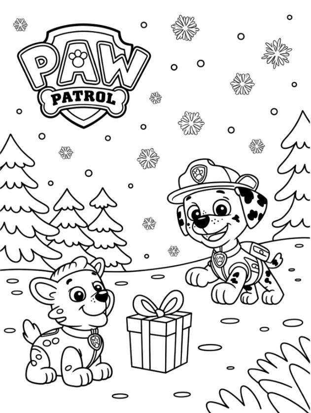1. Paw Patrol Outlines for Christmas Cheer