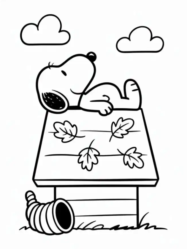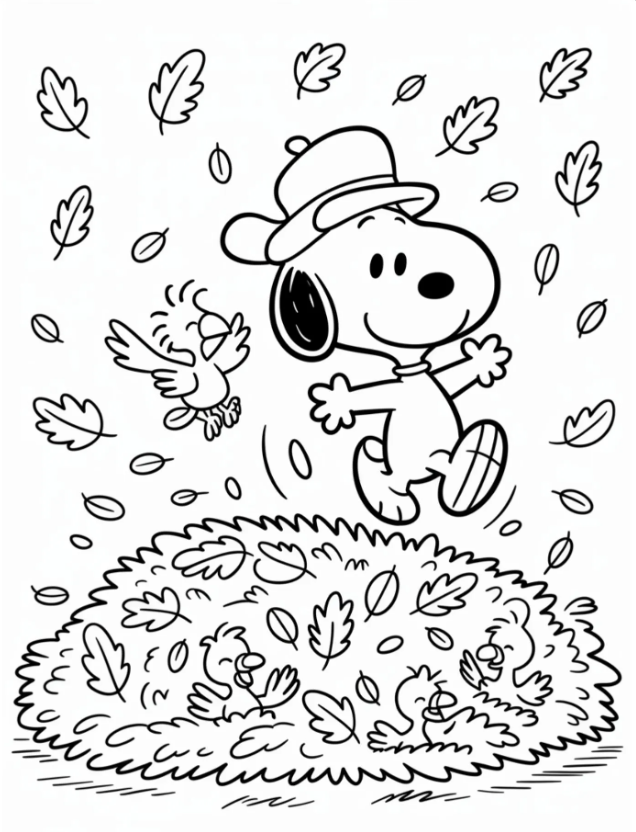 These festive outlines bring out the best of Thanksgiving, with Snoopy in his chef hat, a pie cooling beside him, and Woodstock peeking in for crumbs. I like these simple line drawings for a fast start, because my youngest can enjoy them without getting lost in tiny details. They print clean, and the shapes are bold, which is gold for little hands.