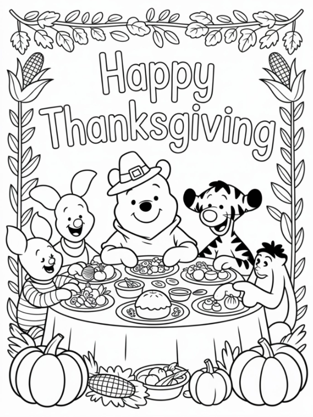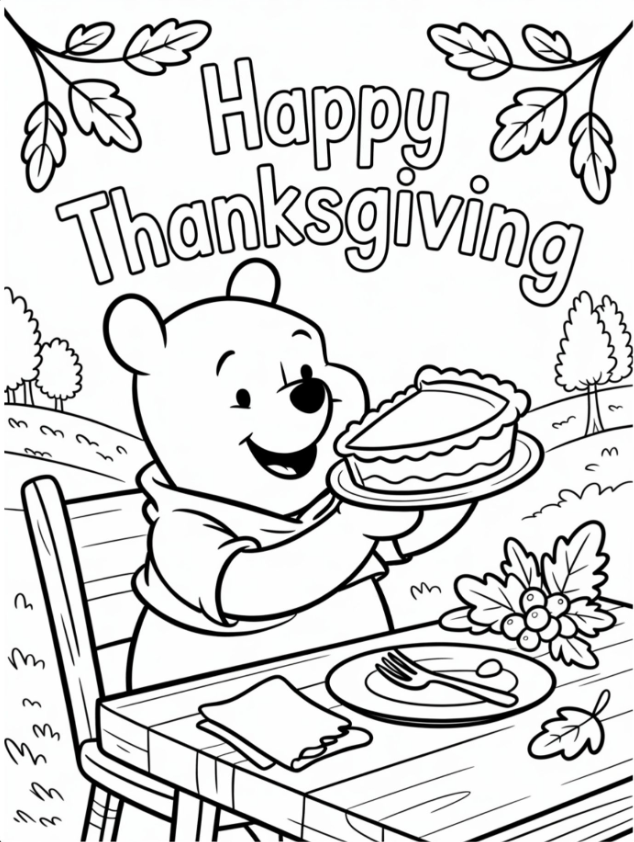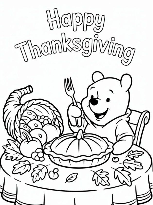 4. Simple Thanksgiving Coloring Sheets with Pooh