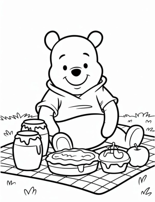 Creative outlines invite kids to add their own touches. Think Pooh near a blank table, or a banner with empty spaces. Let them draw the pie, write the banner letters, or add a leaf pile next to Pooh’s feet. Open space is a gift for imaginative kids, and they rise to it.