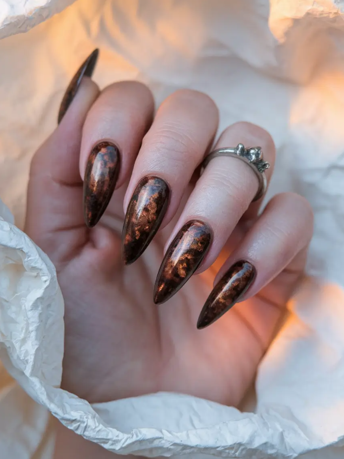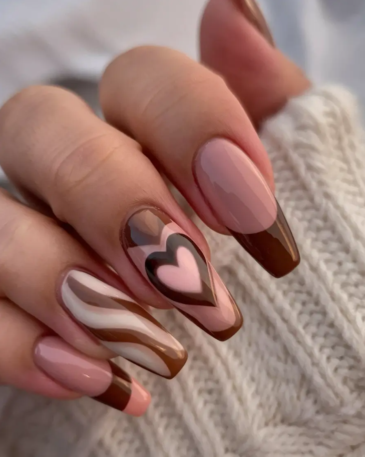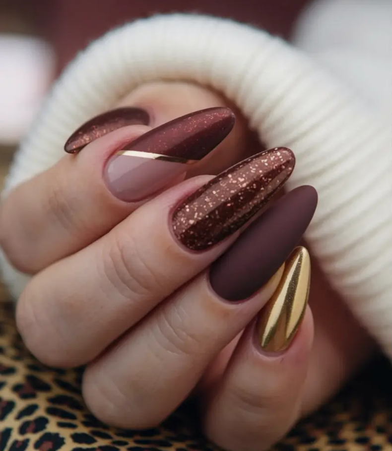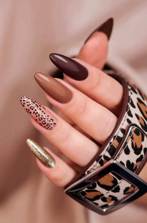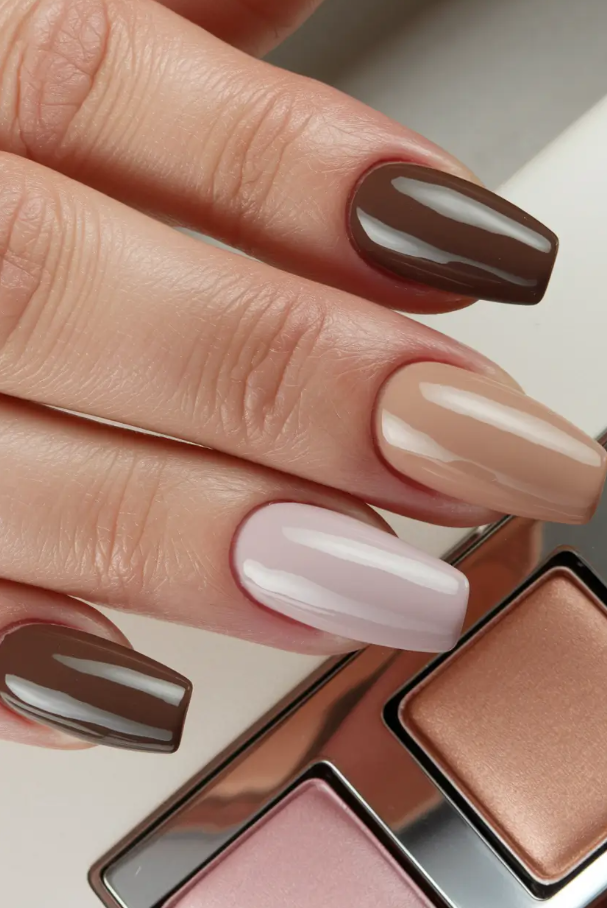 This season, I’ve gathered 2025 inspo that proves brown is anything but boring. In fact, it’s the chicest neutral you can work with. Each design below tells its own story—whether it’s a touch of golden shimmer, abstract artistic flair, or minimal short-square sophistication.