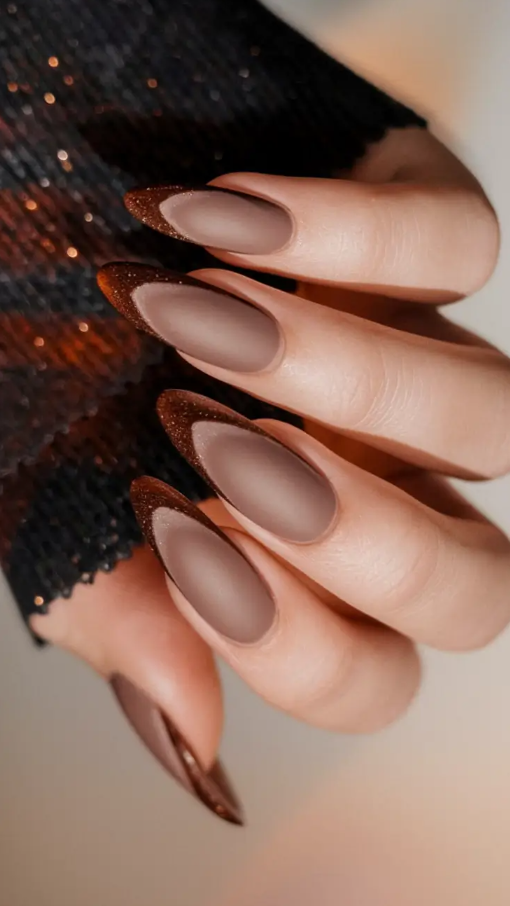 20. Matte Mocha French with Sparkling Tips