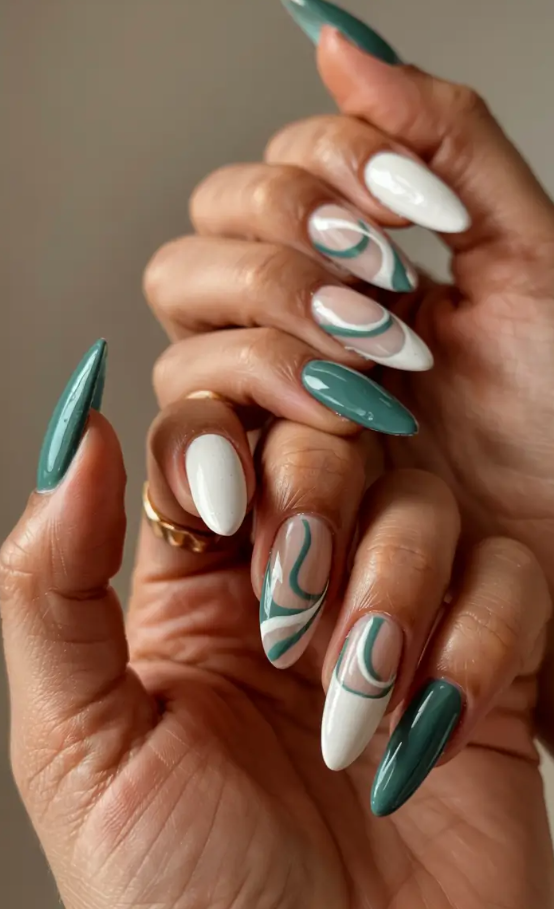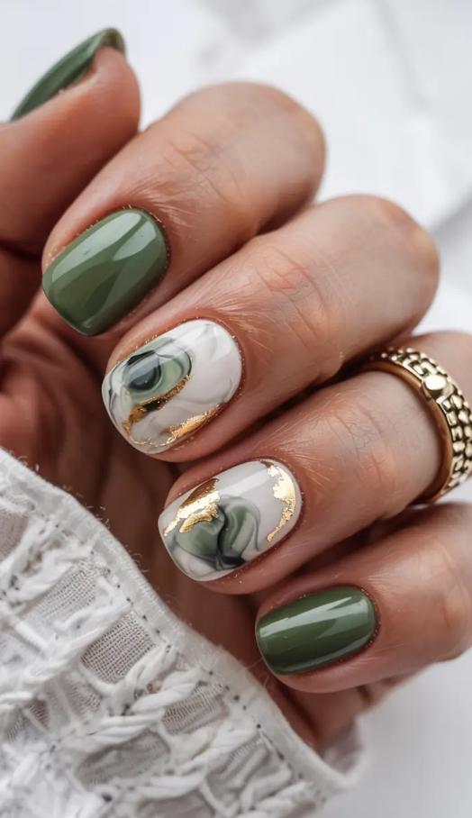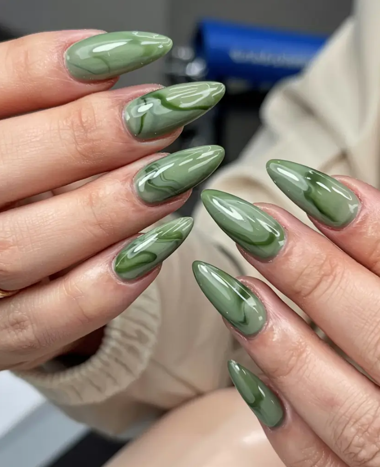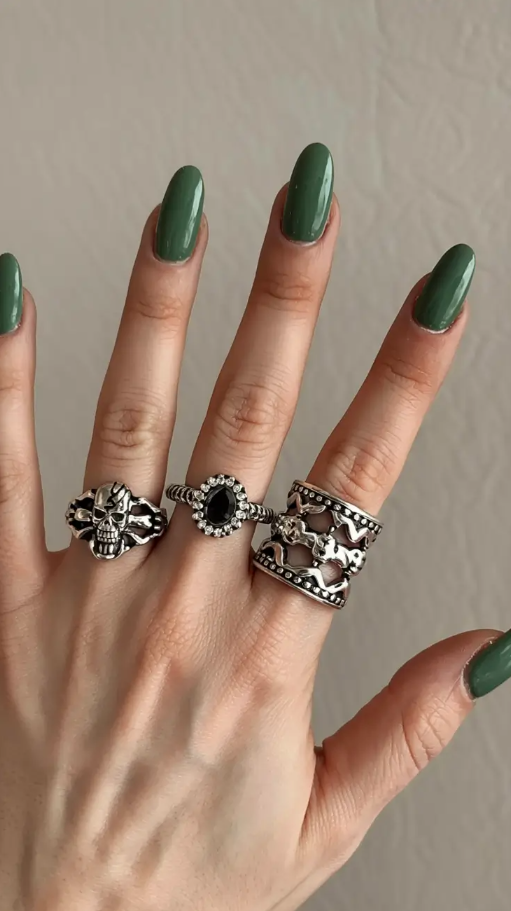 Green nails offer elegance and versatility. Whether you prefer simple solid shades or love detailed nail art like swirls, leaf motifs, or abstract patterns, there’s something about green that naturally gives off an earthy, nature-loving vibe. Paired with cozy sweaters, gold jewelry, and autumn accessories, these nail looks aren’t just Instagram-worthy—they’re made to shine on Pinterest boards worldwide.