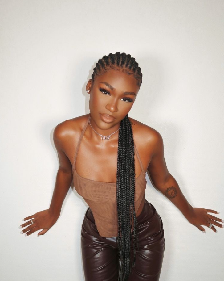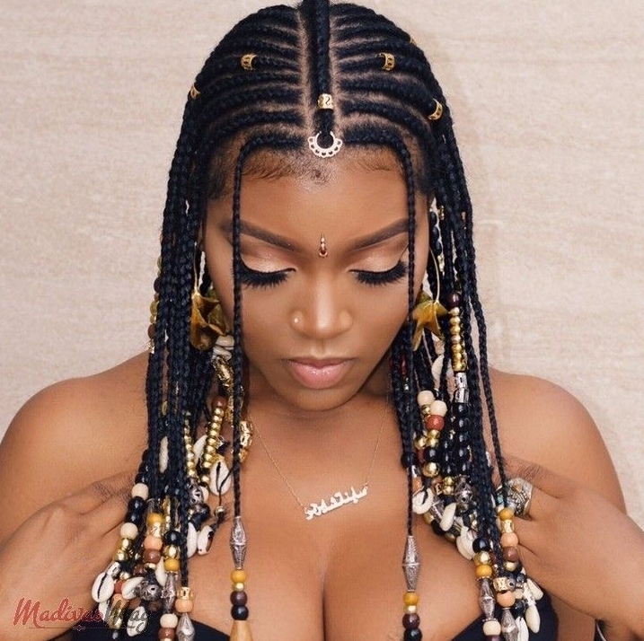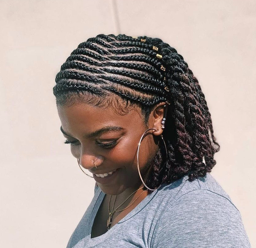 These tribal West African cornrow braids are so versatile and stylish. Beads and metallic hair cuffs are the best hair accessories for the look. For a little twist and creativity, add some curly crochet braids and you won’t want to take it off.