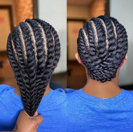 Flat twist is a combination of two-strand twists and cornrows in one hairstyle. It’s a simple hairstyle that is easy to create and take down.