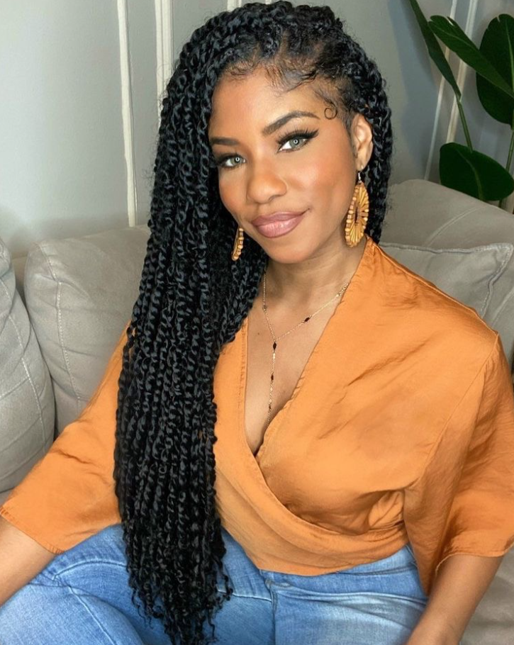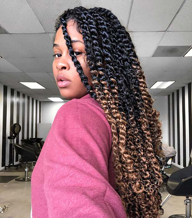 These unique 2 strand twists have different ways to install them. You can either braid your hair with curly extensions or fix pre-twisted crochet passion twists, either way you get a really cute hairstyle.