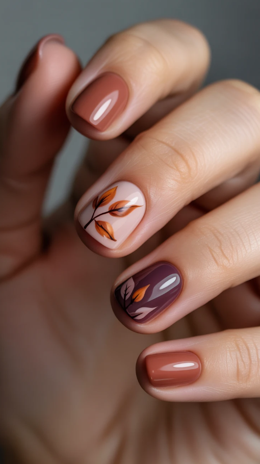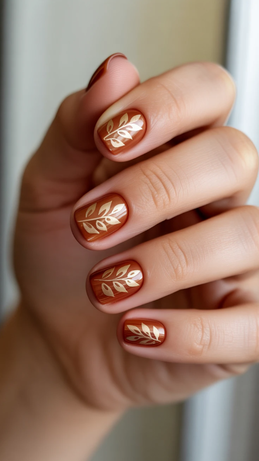 26. Elegant Fall-Inspired Nail Art for Short Nails
