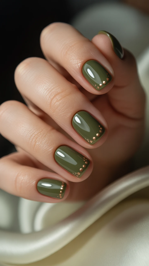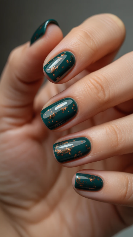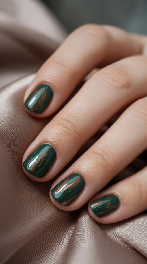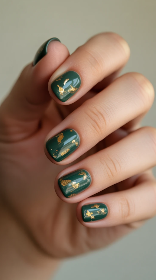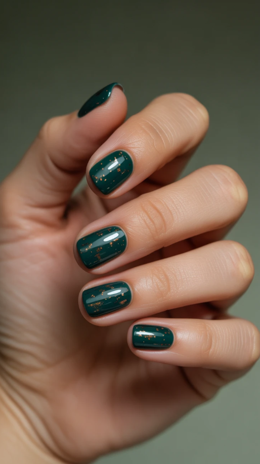 27. Elegant Short Fall Nails with a Touch of Glam Green