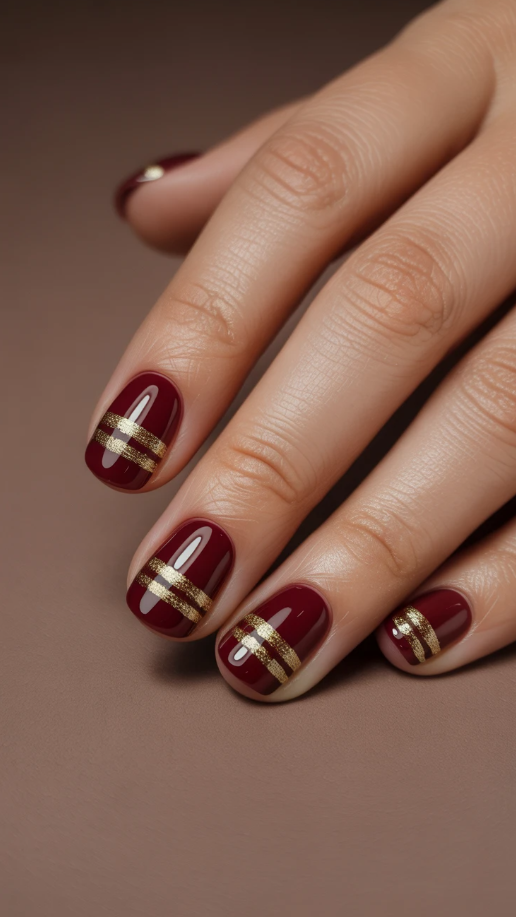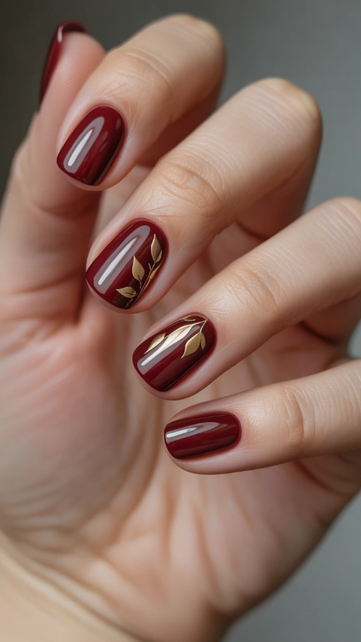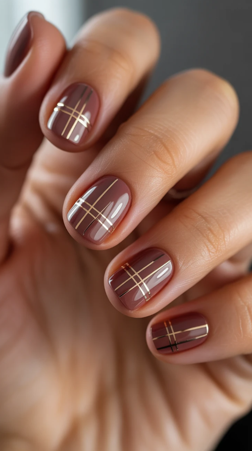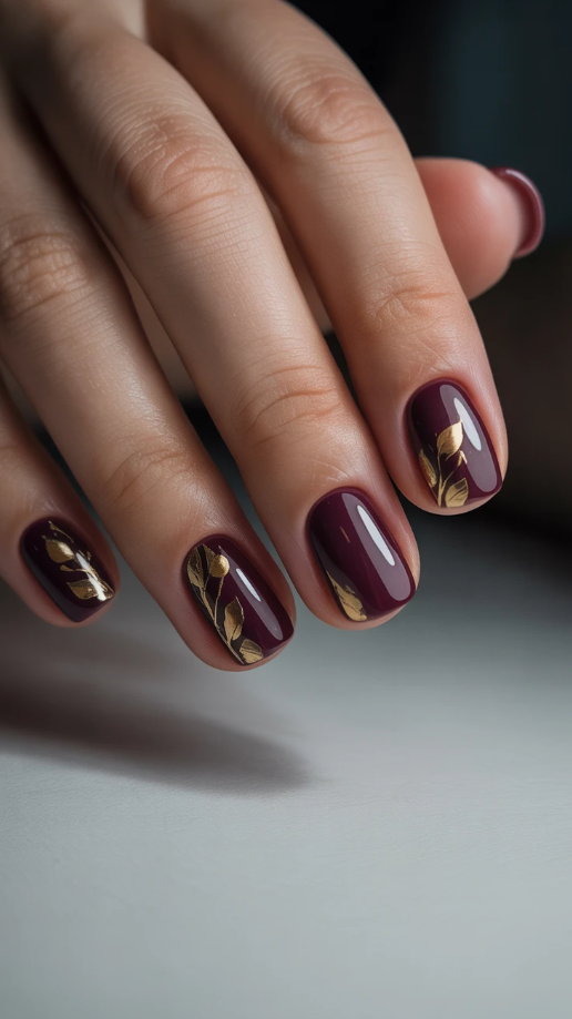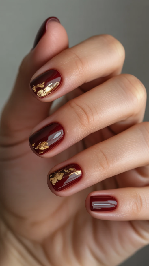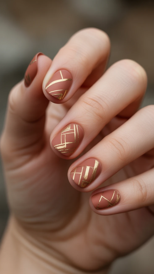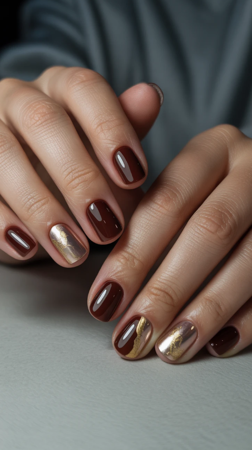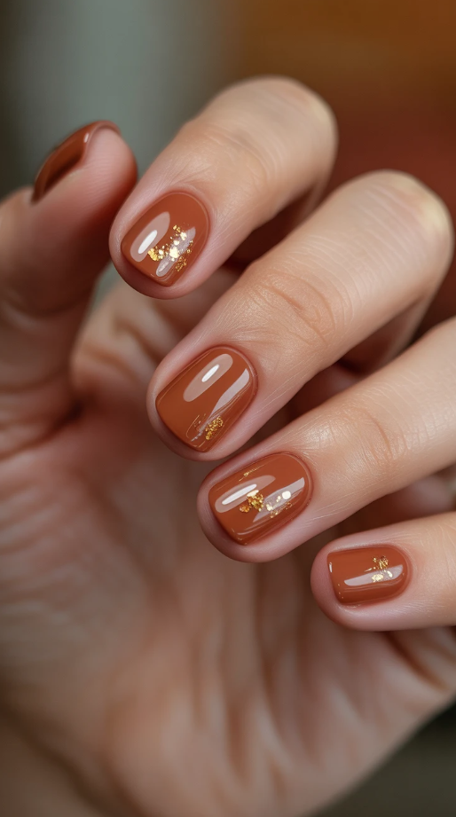 20. Elegant Short Fall Nails with a Touch of Glam Gold
