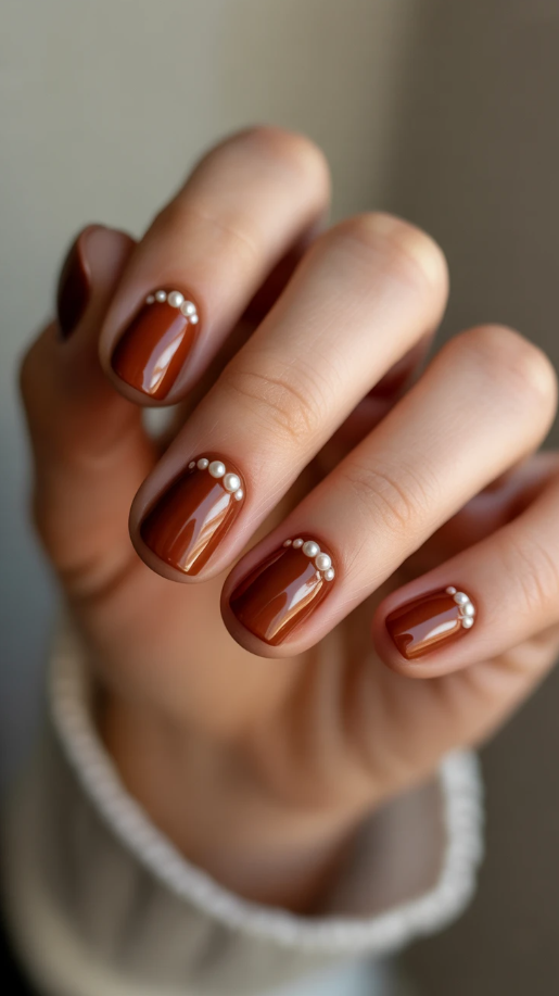 36. Elegant Short Fall Nails with Pearls