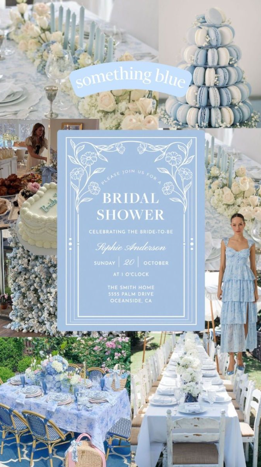Discover creative ideas for decorations, color palettes, table settings, invitations, outfits, games, and party favors, all beautifully centered around soft blue tones and chic accents. Whether you’re planning an intimate gathering or a glamorous celebration, our curated ideas help you create a cohesive, charming, and Instagram-worthy bridal shower experience.