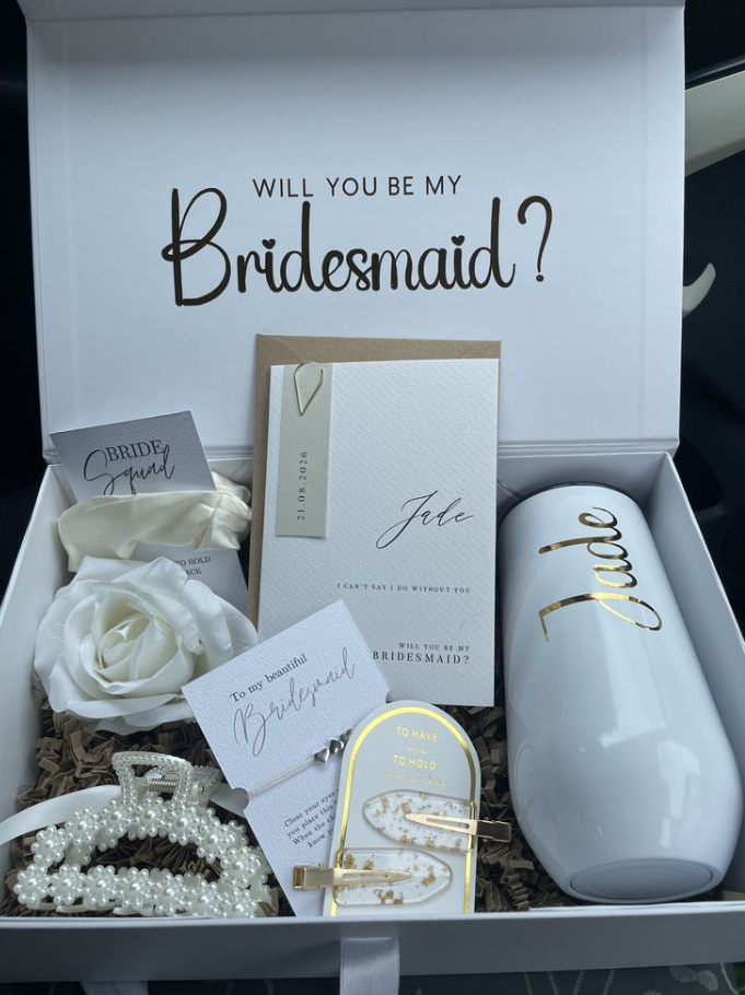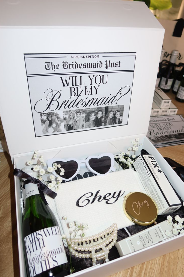 Explore a collection of unique, creative, and heartfelt proposal ideas, from personalized gifts and handwritten notes to fun surprises and beautifully curated proposal boxes. Whether your style is elegant, modern, or playful, you’ll find inspiration to create a proposal your bridesmaids will truly cherish.