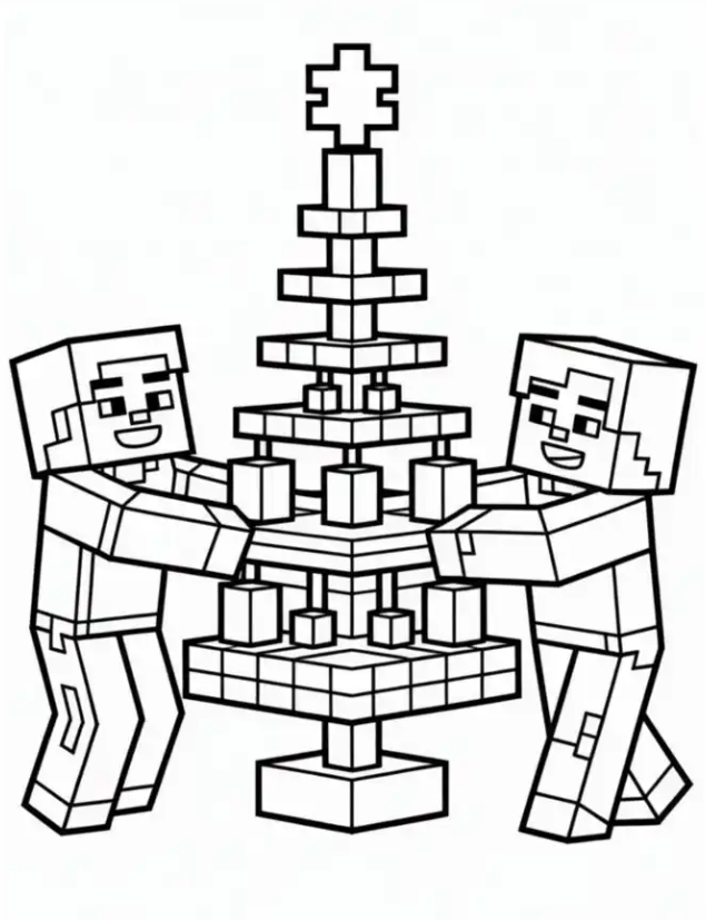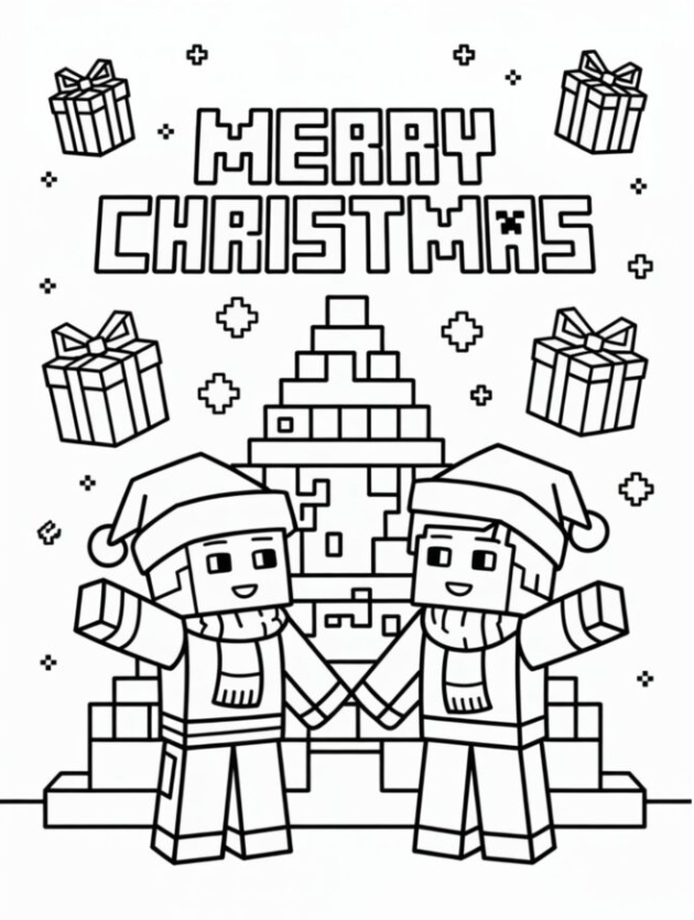 4. Creative Outlines for Minecraft Christmas Designs