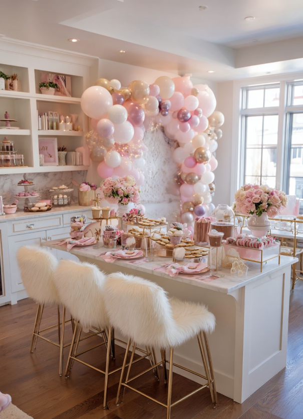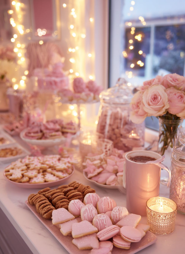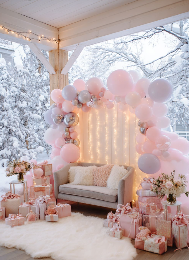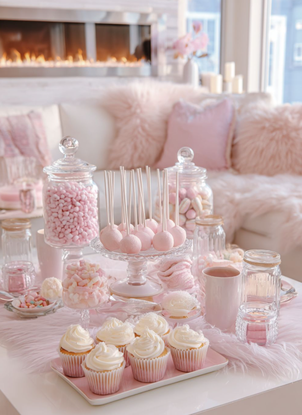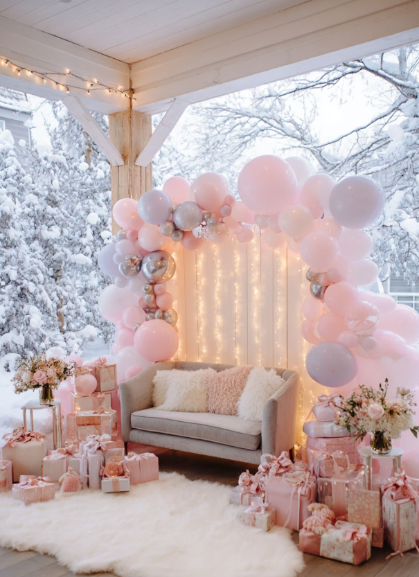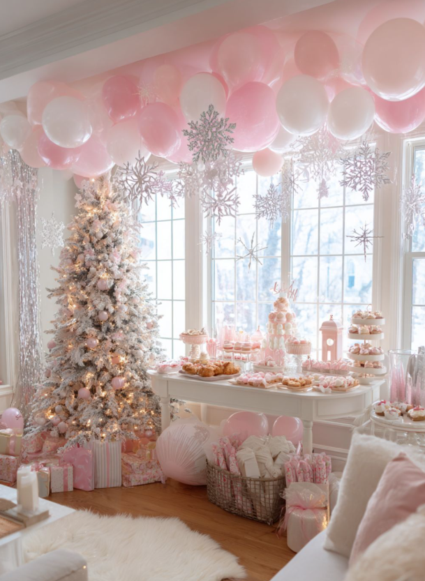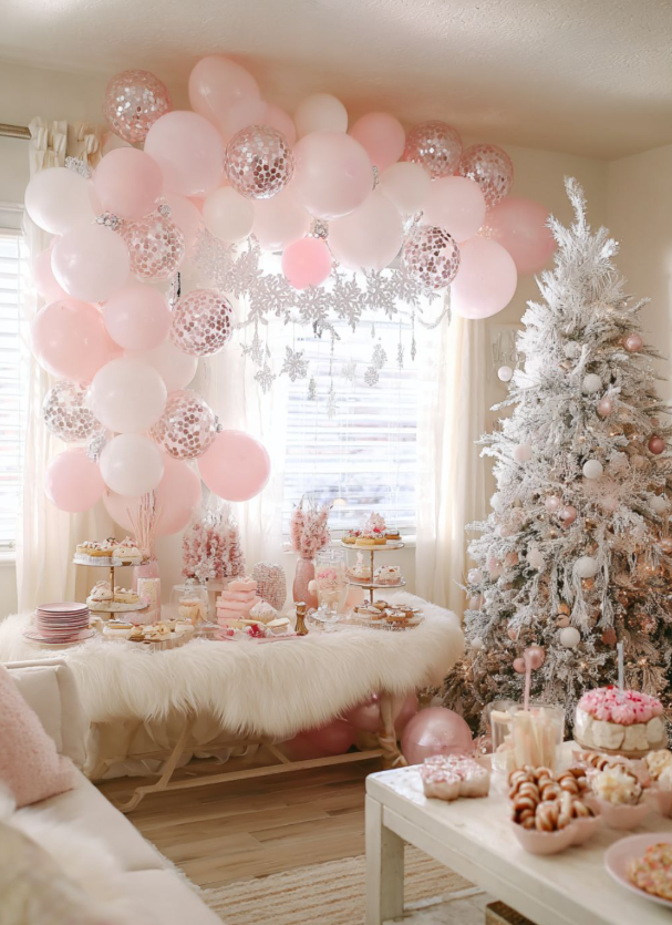 Featuring shimmering décor, elegant treats, and frosty pastel hues, this theme creates a cozy yet glamorous atmosphere perfect for the winter season.