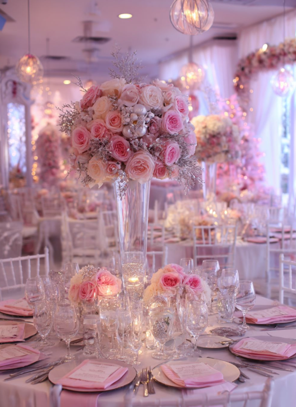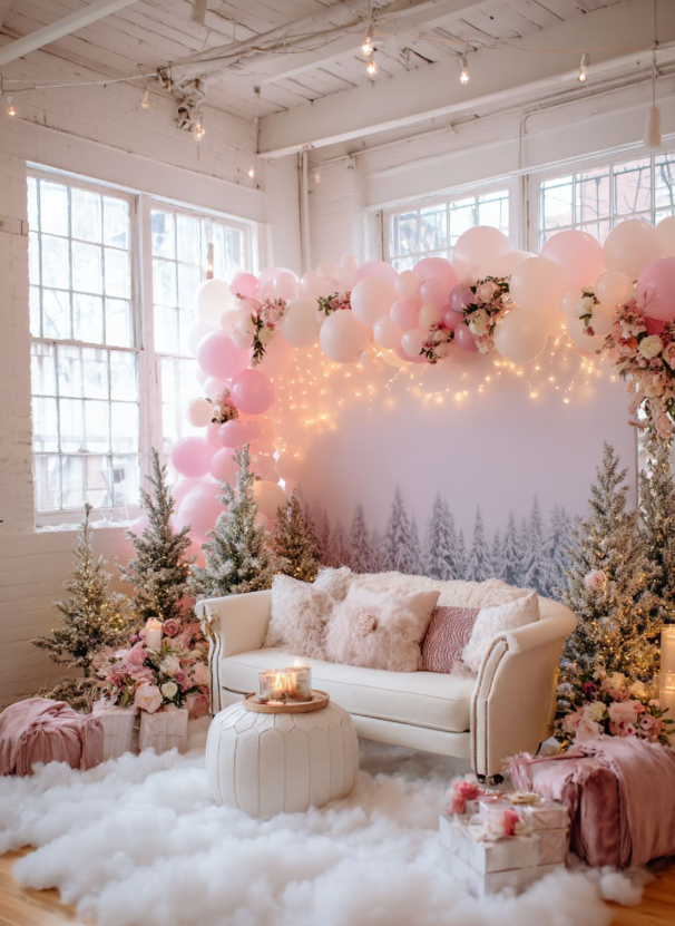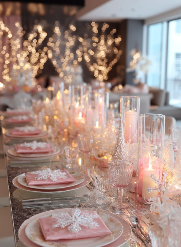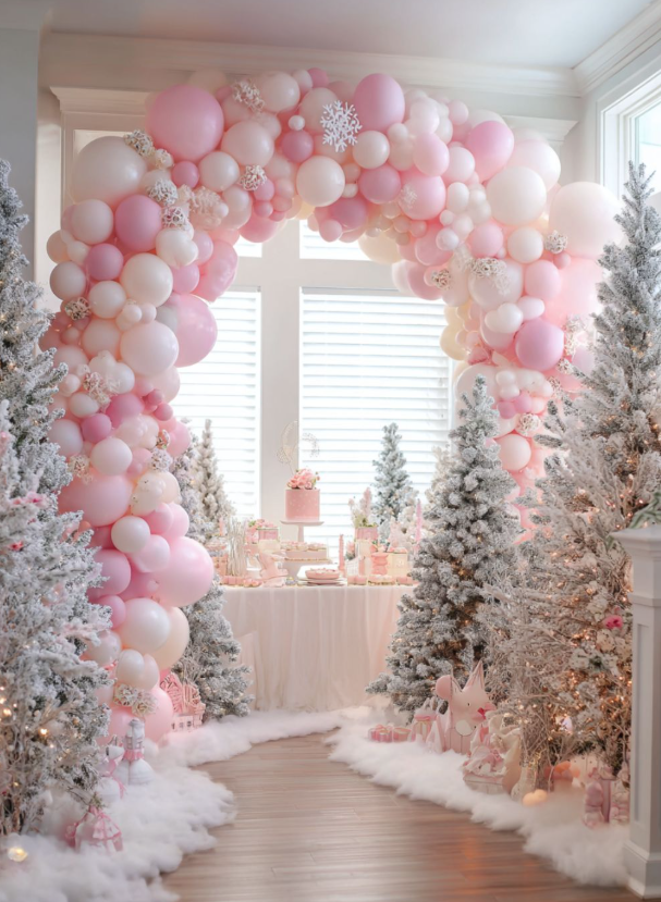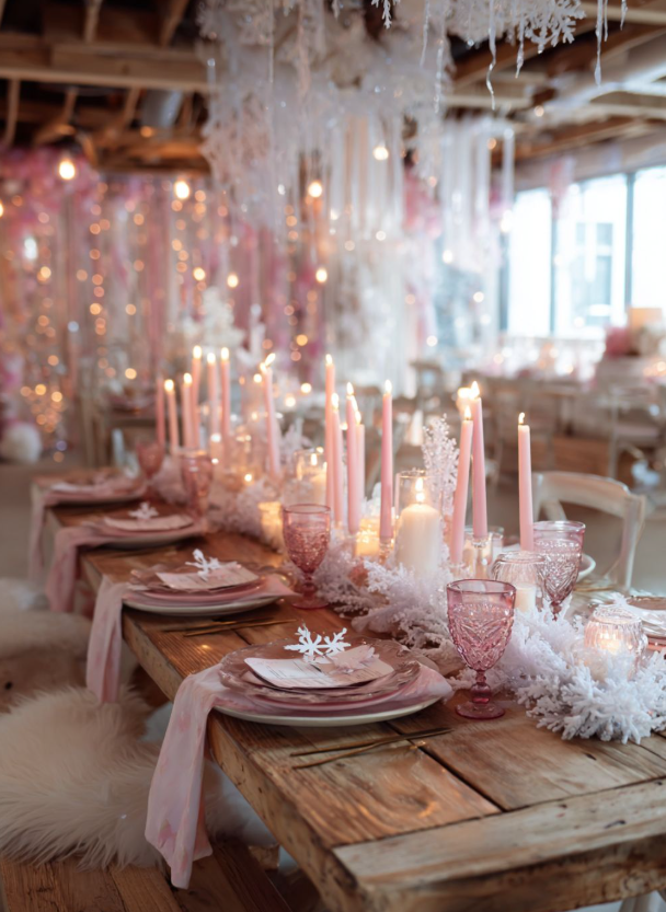With soft pinks, sparkling snowflakes, and whimsical details, your event can feel like it stepped right out of a dreamy winter storybook.